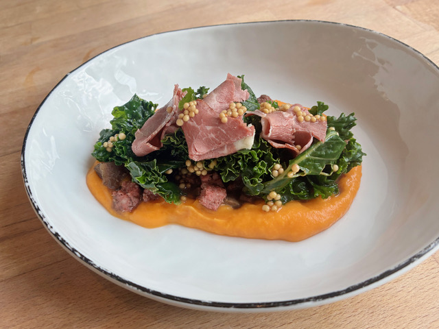 Deswegen könnt Ihr bei uns auch so wenig Wiederholungen auf die Karte finden: wir servieren das, was grade wächst, was wir saisonal finden können und was uns unsere Lieferanten vom Bergsdorfer Wisenrind bis zum Florahof anbieten: mal Pastrami vom Herz des Bergsdorfer Wiesenrinds, mal Krebse aus Werder, Maränenmatjes, Rosenkohlköpfe, Haferwurzel oder ...nagut: Erdbeeren. Aber nur kurz! Und nur im Frühsommer!