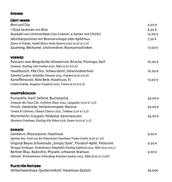 Wir öffnen unsere Weinbar von Dienstag bis Freitag ab 18 Uhr und halten von Champagne bis Pfalz, von oben bis unten eine schöne Auswahl offener Weine und Schäumer bereit, aus denen Ihr nach Herzenslust wählen könnt.